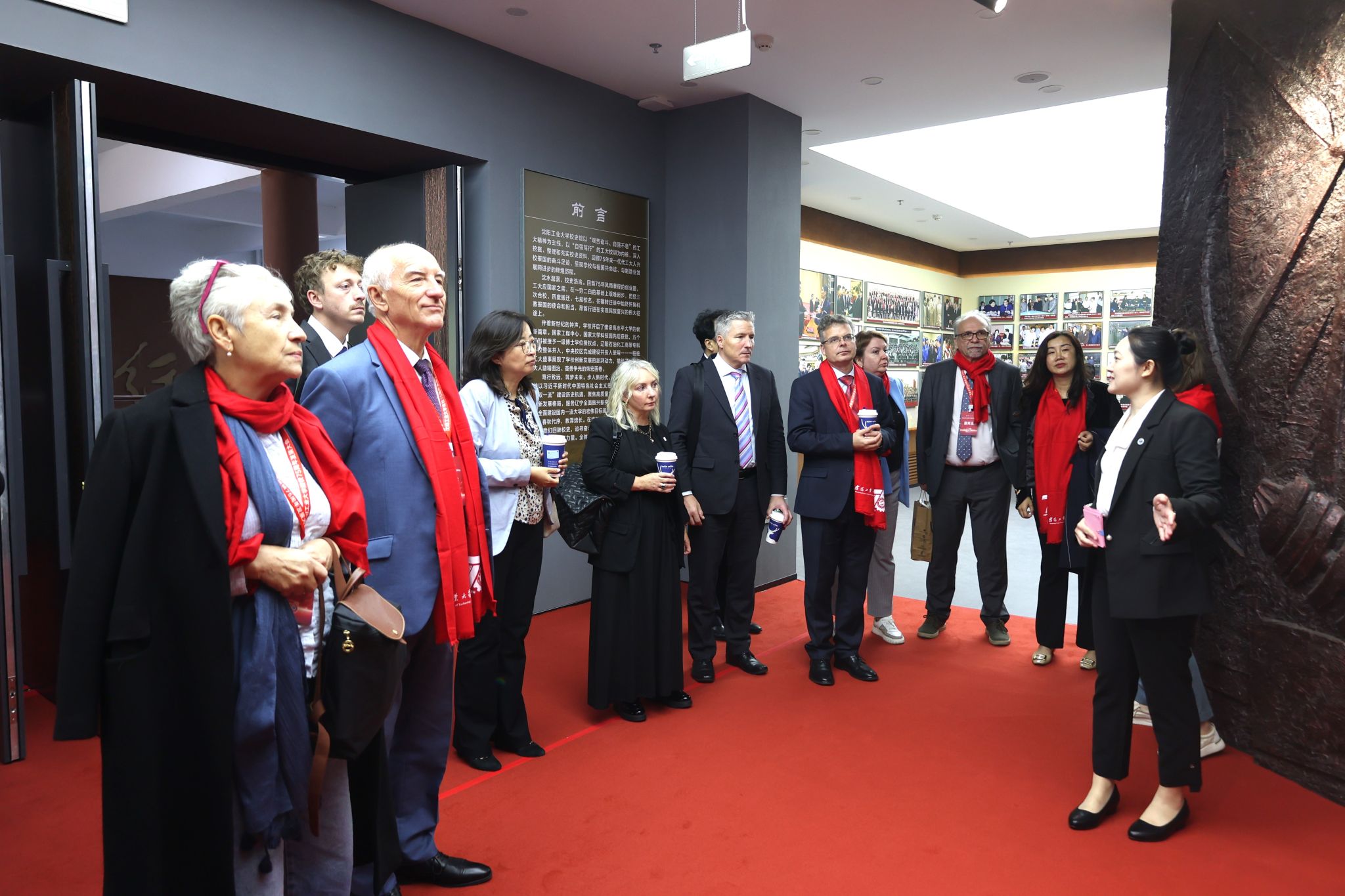 据悉,校庆期间,来自英国、美国、俄罗斯、日本、泰国等国家6所友好学校的18位嘉宾全程参加了我校75周年校庆系列活动。21日上午,他们参加了我校建校75周年发展大会,对大会盛况表示赞赏,对会议组织、会议内容给予了高度评价,对我校75年来办学取得的丰硕成果印象深刻。发展大会结束后,他们参观了我校校史馆,进一步了解了我校发展历程、办学实力和办学水平,高度评价了我校校史馆的规划和设计,认为馆内展品呈现出了强烈的历史感。当晚,一行人参加了我校建校75周年文艺演出,提升了对我校办学软实力的认识,领略了工大人的风采,感受到了工大精神。在返回宾馆的路上,参观了异地仿建的老校区北院第一教学楼大门模型、木化石、钟楼,在图书馆门前驻足欣赏激光束表演。
