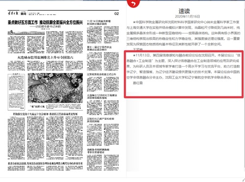近日,我校承办的第四届信息感知与融合前沿论坛隆重召开,论坛邀请了八位院士和社会知名人士。本次论坛以信息融合+工业制造为主题,深入探讨信息融合在工业制造领域的应用及研究成果,为广大科研人员及本领域专家学者打造一个高水平学习与交流平台。本次论坛受到了辽宁电视台、《辽宁日报》、《辽沈晚报》等多家媒体的深度报道。