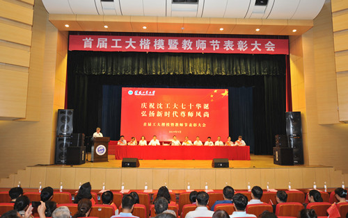 一流之师屹立三尺讲台,孕育士子花香。工大楷模翘首时代潮头,助力一流梦想。9月10日下午,学校在工大会堂隆重召开“庆祝沈工大七十华诞 弘扬新时代尊师风尚”——首届工大楷模暨教师节表彰大会。校领导刘自康、郭连军、李三喜、袁晓光、何又春、白秋艳、王世杰出席大会;首届工大楷模唐任远院士、杨理践教授、林莘教授、刘伟军教授、王德喜教授出席大会;获奖教师代表,从教30年教师代表,机关职能部门负责人,沈阳校区各教学单位教职工代表,学生代表参加大会。会议由党委副书记、校长郭连军主持。